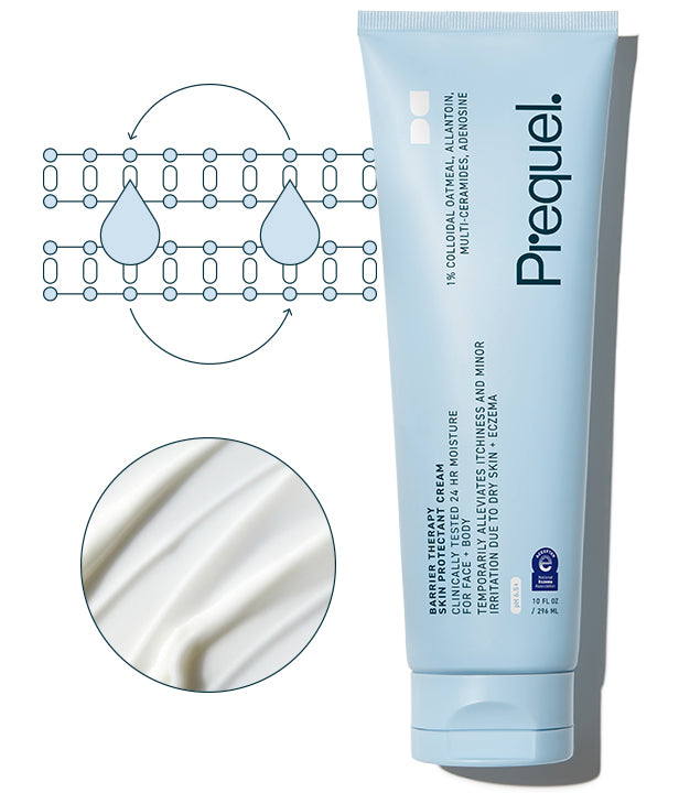 A skin protectant cream for the face and body that alleviates minor irritation and itchiness due to dryness and eczema flare-ups. Formulated with a potent blend of colloidal oatmeal, multi-ceramide blend, allantoin and adenosine, this soothing cream absorbs easily and provides relief to dry, distressed skin.