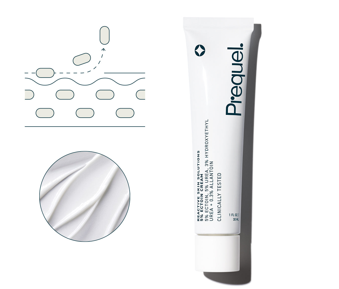 A steroid-free, soothing solution that renews the skin's surface while restoring compromised skin barrier. Formulated with a potent blend of 5% ectoin, urea, hydroxyethyl urea and allantoin, Prequel's 5% Ectoin Cream alleviates sensitivity, scaling, roughness, redness and irritation while moisturizing the skin.